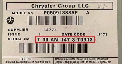 Your RAM car radio serial number typically looks like this: